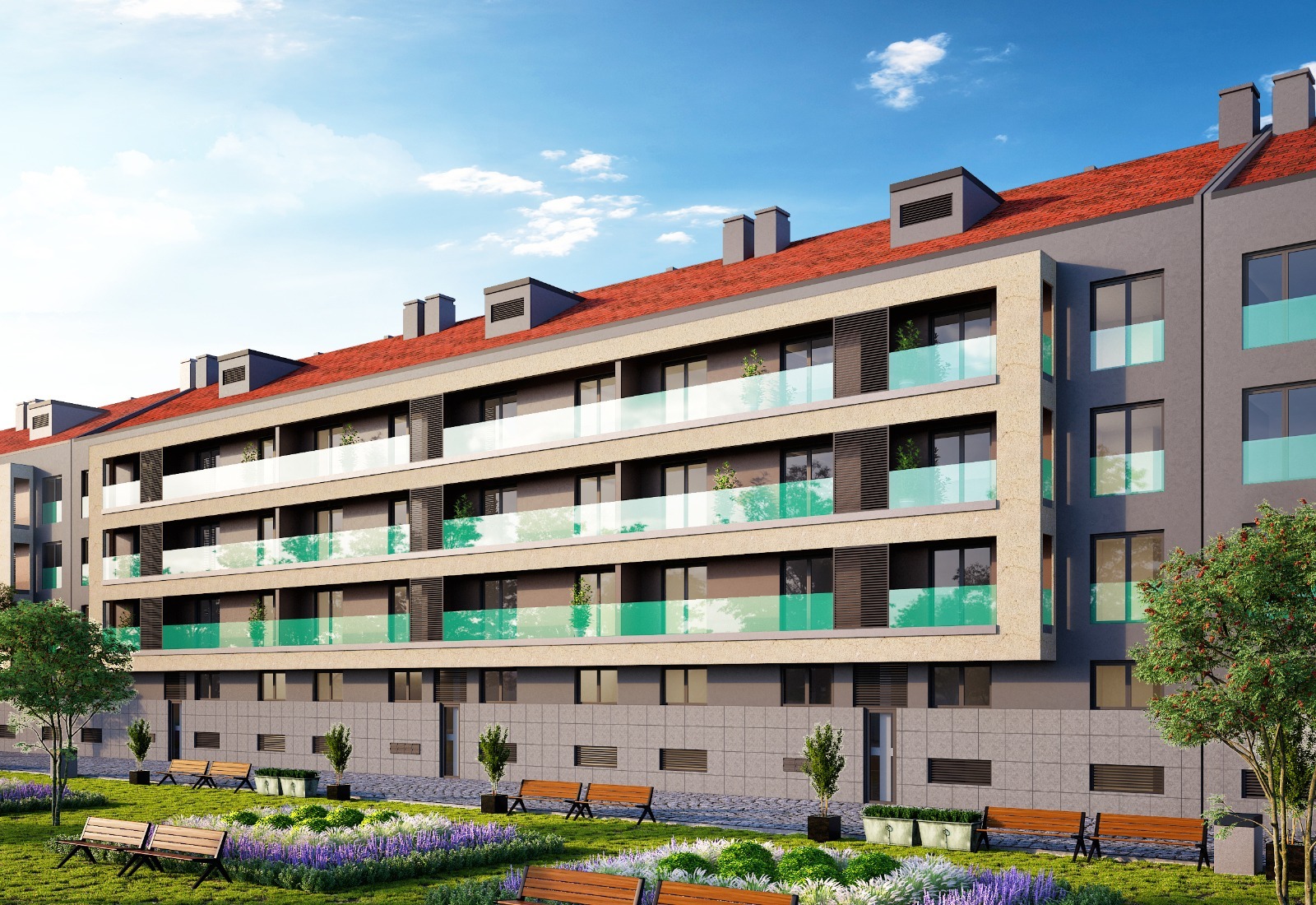 Todos os apartamentos têm a classificação energética A+ providos de aquecimento solar foram projetados para garantir a sustentabilidade e conforto térmico e subsequentemente economia de energia. Completamente equipados, parqueamento e arrecadações incluídos. Uma solução moderna e consciente para quem busca viver de forma mais ecológica.